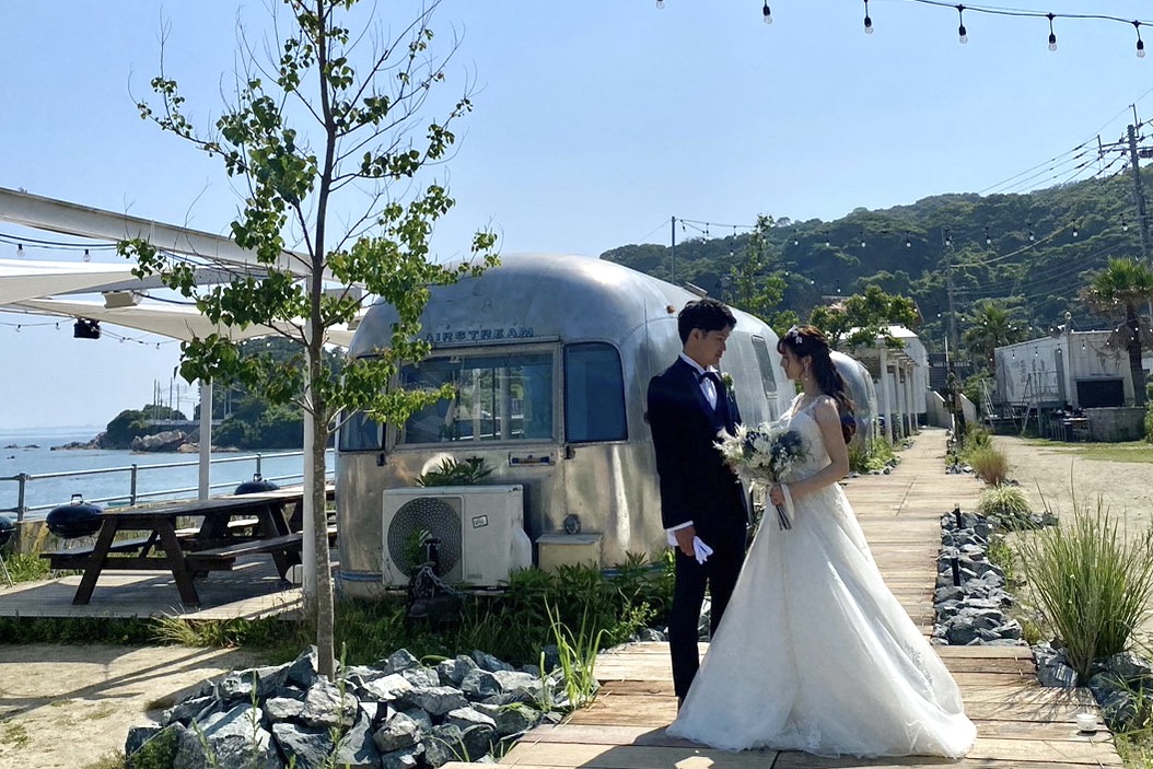 お二人のご希望で今宿にあるオーシャンハウスさんで撮影してきました!天候にも恵まれ、オシャレな敷地内とお二人がとても映えていました!